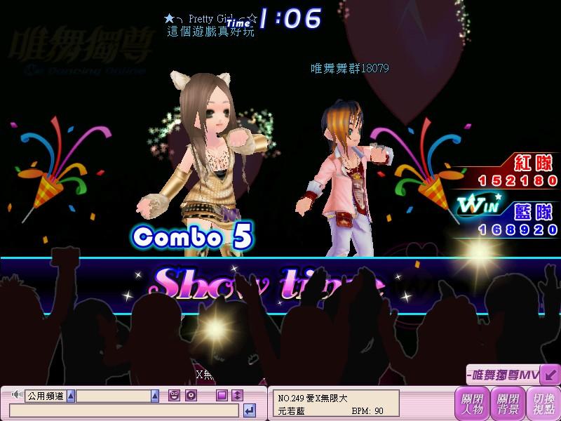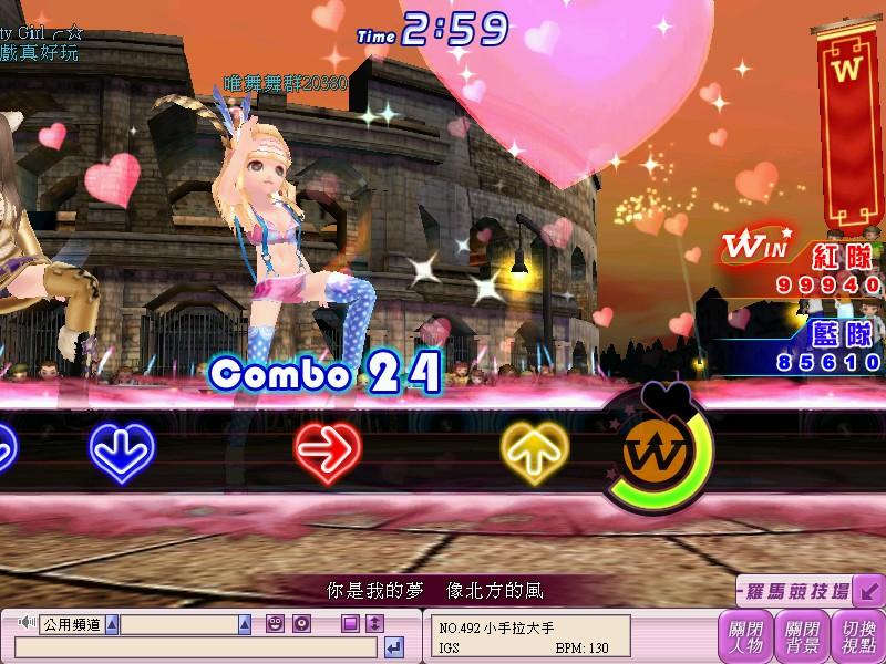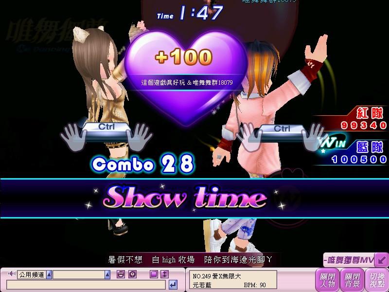 此外,「愛戀模式」還有一個精心設計的Bonus模式,當Bonus模式啟動時,畫面會出現兩顆大愛心, 雙方必須連續敲擊鍵盤的「Ctrl」按鍵,讓愛心往中間方向移動,愛心合併的位置越接近畫面正中間,越能提升雙方結算時的速配指數,而當雙方愛心合併的位置越接近畫面正中間,越能提升雙方結算時的速配指數。而且分數領先的隊伍,還有機會出現雙人獨秀舞步的特殊Show Time畫面,還有舞台下眾多觀眾尖叫喝采,享受巨星般的快感唷!