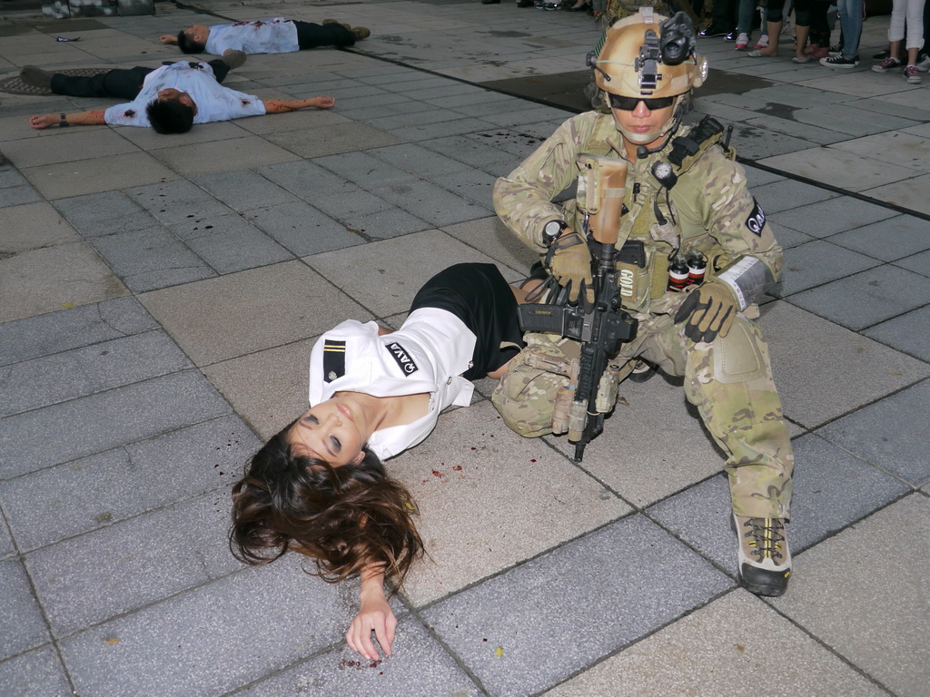 在激烈的對戰中,兩名逃犯抵不過 AVA 特種軍隊強大的火力紛紛中彈倒地身亡,最後一名苟延殘喘的逃犯趁混亂中挾持了 AVA 中的女性軍官:伊娃作為人質,希望藉此可拖延甚至阻擋特種軍隊的攻擊,儘管軍隊小心翼翼的避免傷害人質,失去理智的逃犯仍在最後關頭一槍擊斃人質,AVA 特種軍隊也趁時將逃犯制伏,結束這場激烈血腥的槍戰,卻也留下人質不幸死亡的憾事。在表演同時,引起眾多民眾圍觀,甚至對戰開槍也引起不少民眾驚呼。以下為巴哈姆特 GNN 拍攝的現場活動表演影片: