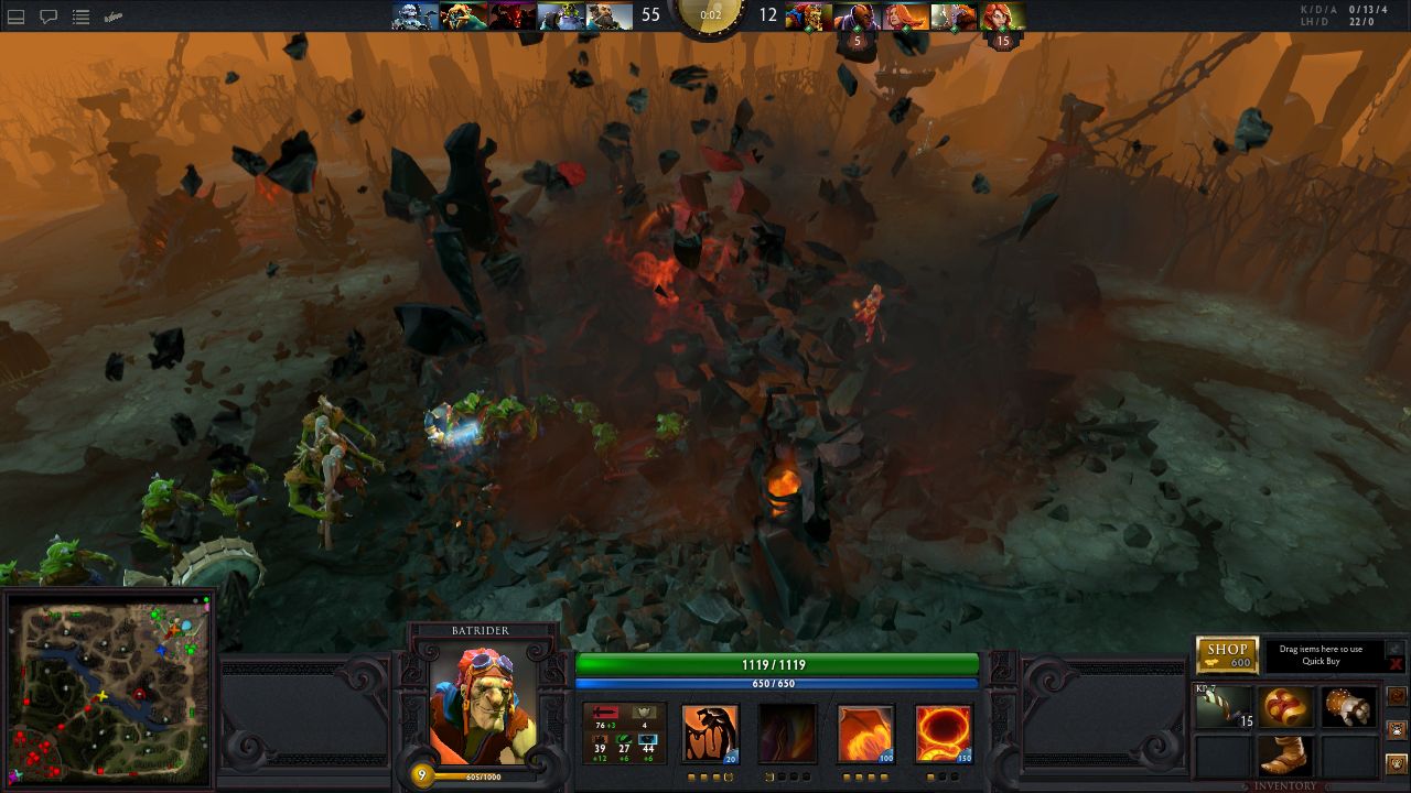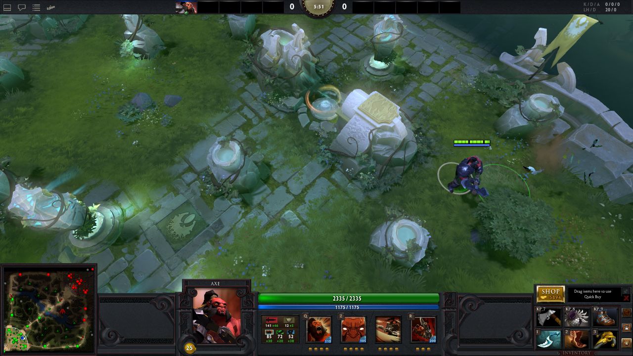 Dota 2》中的各項細節也比較完整,像是建築物會隨著血量而慢慢塌陷,以及購買系統更加的人性化,至於《