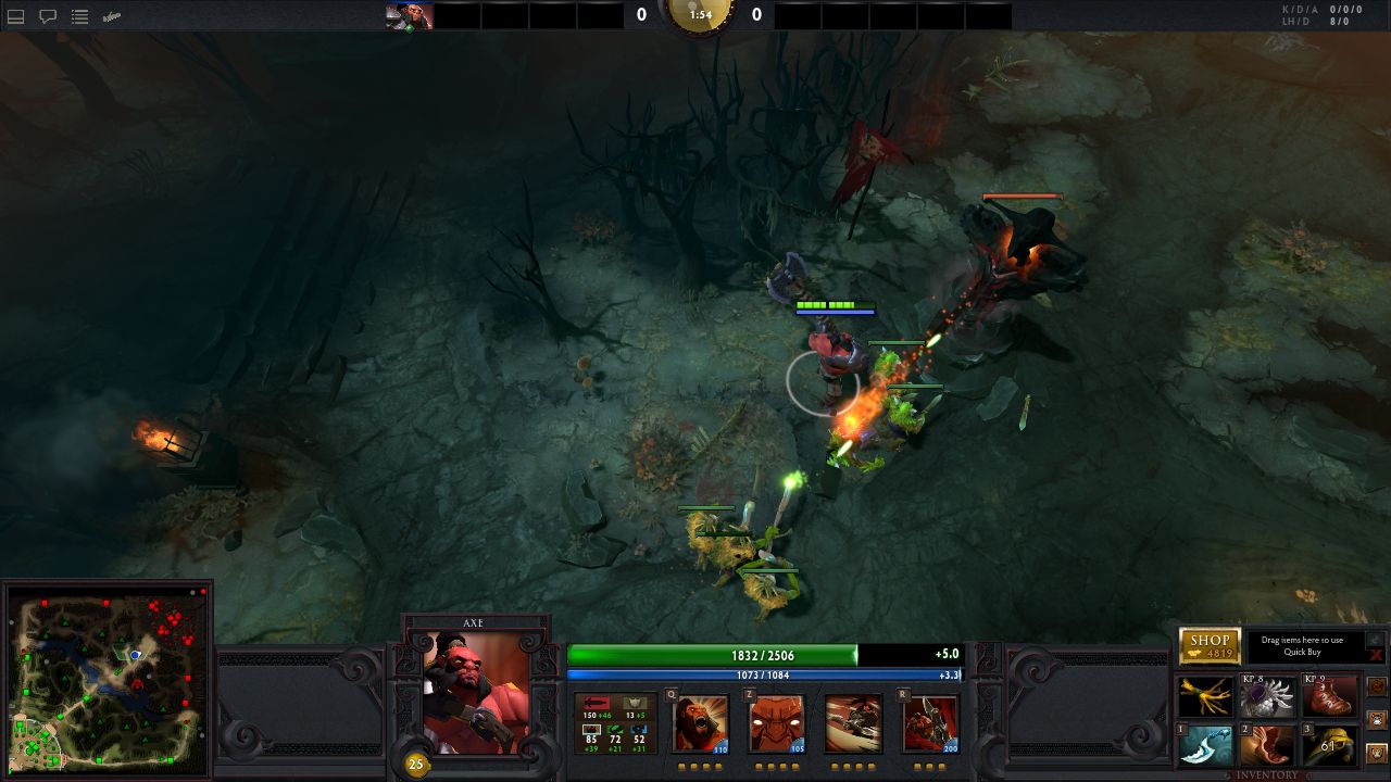Dota 2》並非傳統的固定視角對戰,玩家可以透過滑鼠滾輪來達到改變視角的功能,這樣子除了可以查看躲在死角的敵人,也可以近距離觀看英雄的風采。