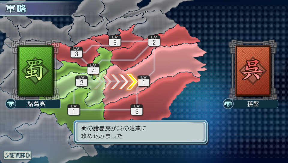 | 率領武將展開戰術動作戰鬥,戰鬥獲勝的話就能俘虜 1 名敵方武將成為我方武將 |