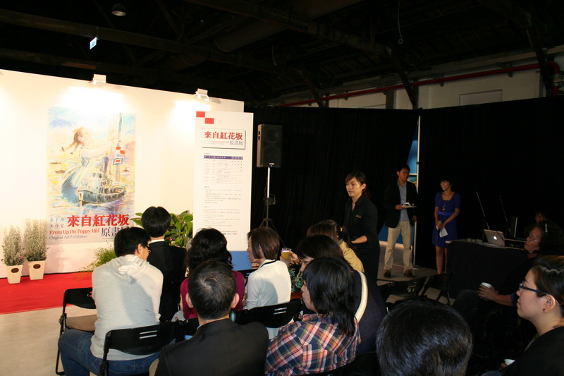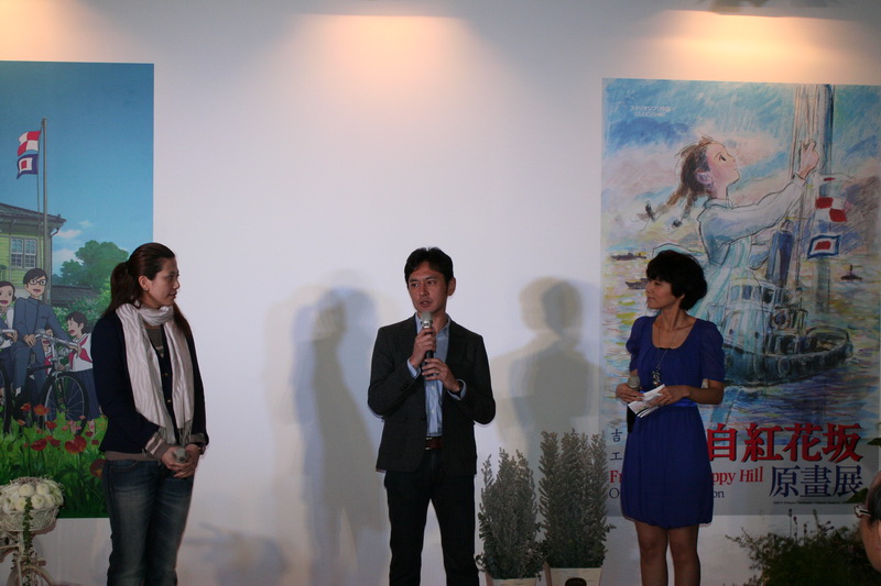 來自紅花坂》原畫展開幕記者會,並邀請到了同作的導演宮崎吾朗出席展覽,並與劇組工作人員登台致詞以及向現場媒體解說了展覽現場手稿以及布置等等細節。
