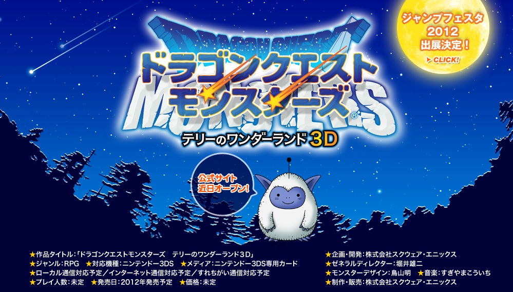 勇者鬥惡龍 怪獸仙境 泰瑞的仙境 3D(ドラゴンクエストモンスターズ テリーのワンダーランド3D)》,並且開設了官方預告網站,並預告將會於近期釋出更多遊戲內容。