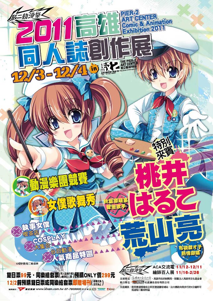 現場並有精彩的舞台表演及動漫樂團演奏大賽等內容,包括了日本知名聲優歌手桃井晴子(桃井はるこ)、布袋戲歌手荒山亮,以及女僕主題歌舞表演,戶外亦有上百台痛車展示以及 Cosplay 攝影交流活動。