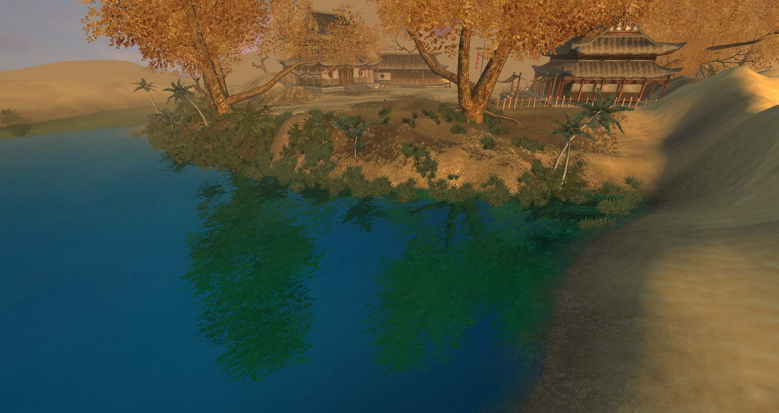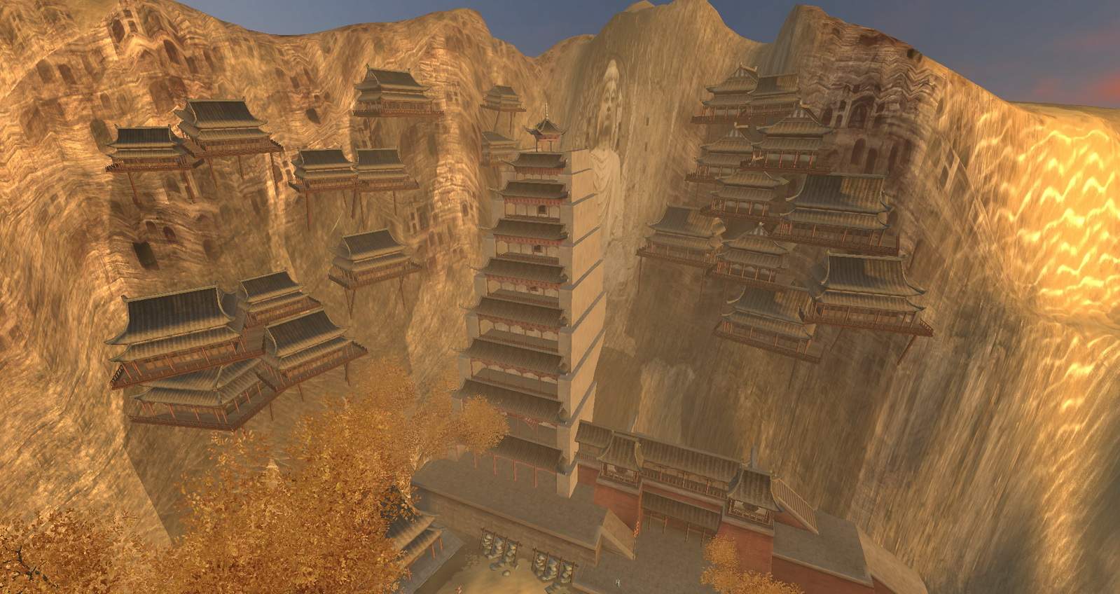 被視為文化重鎮、世界遺產,以莫高窟聞名天下的敦煌,位處西北,除了俗稱「千佛洞」的莫高窟肅穆莊嚴的佛教壁畫外,山勢環抱成月牙之型的「月牙泉」亦是名景之一。在遊戲中因敦煌位處西北,因此研發團隊精心營造出黃沙遍野的漠北風情及莫高窟的壯麗景觀。