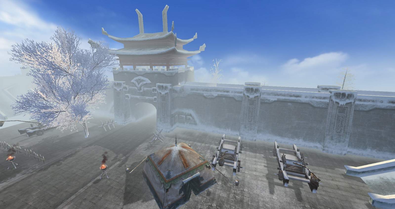 在遊戲中扮演強大外患國家的高句麗,位處隋朝東北,緯度偏高,因此入冬後天氣寒冷,滿地覆雪,但又因進入軍事戰爭狀態,因此放眼望去,在地圖上的建築多半是兵營城寨,以及充滿肅殺之氣的高句麗都城,呈現出一種特有的滄涼氛圍。