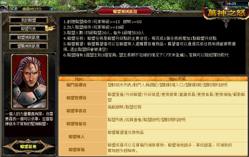 玩家在等級達到 10 級以後,就擁有了加入聯盟的權利,可選擇自己喜愛的聯盟並申請加入。加入聯盟不僅讓自己的勢力得到更好的安全保障,更可以有盟友的幫助,讓侵略者無法越雷池一步。當然,如果不想加入別人的聯盟,只要等級達到 15 級以上,擁有 50 銀幣,也可以輕鬆自己創立聯盟。