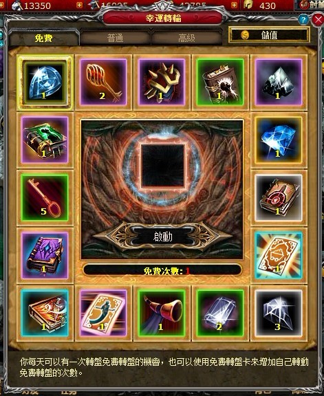 在公測版本中玩家每天只要登入遊戲,就可獲得一次免費使用幸運轉盤的機會,轉盤獎勵包括紫裝、特殊兵卡、資源等。