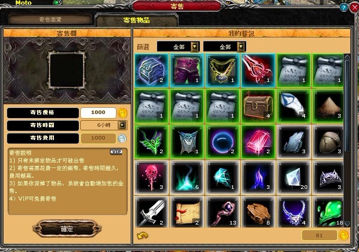 在拍賣行內玩家可以將你需要拍賣的道具寄放,以換取金錢。