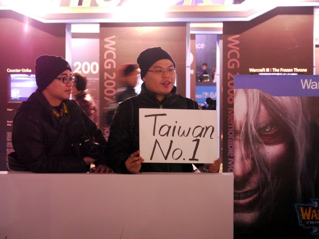 | Anarchy-DKP比賽中 左前方有玩家高舉標語為台灣加油 |