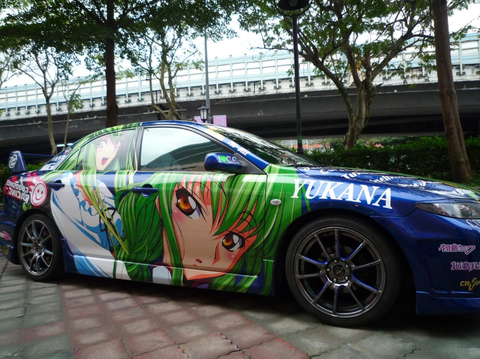 至於站聚會場外也展示精美的痛車,還有為參觀民眾介紹痛車的由來,車輛精美的圖案吸引玩家拍照。
