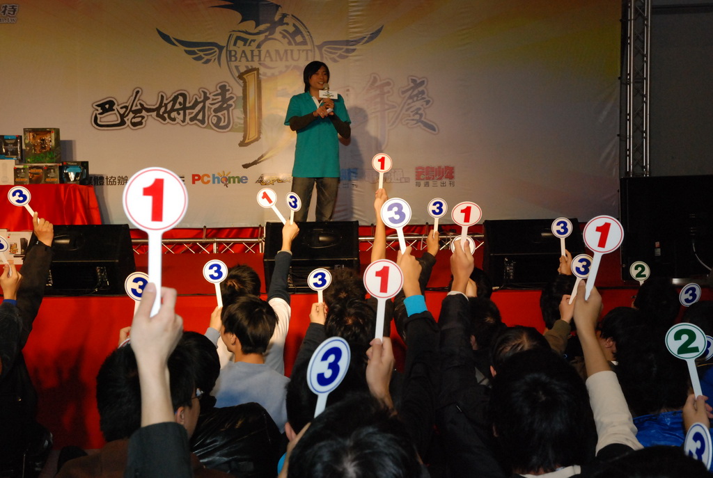 今年站聚舞台活動先由巴哈姆特大家長 sega 致詞揭開序幕,sega 同時以今年特製的巴哈姆特周邊作為獎品,在舞台上進行巴哈姆特相關知識大問答,吸引眾多玩家踴躍回答。