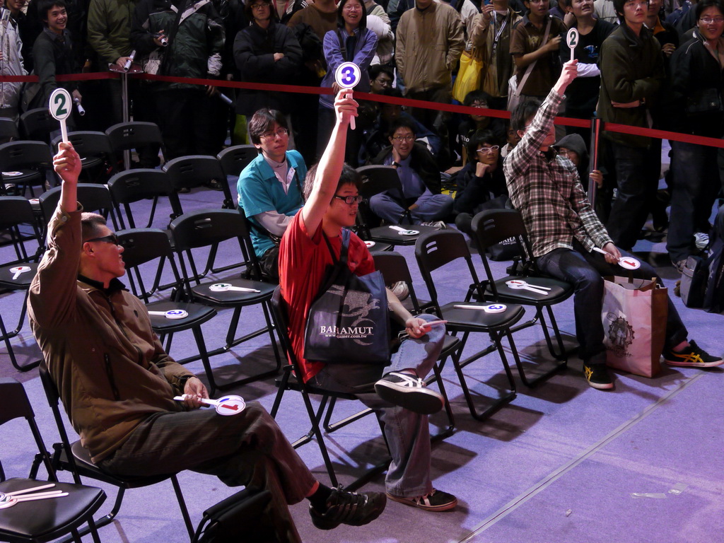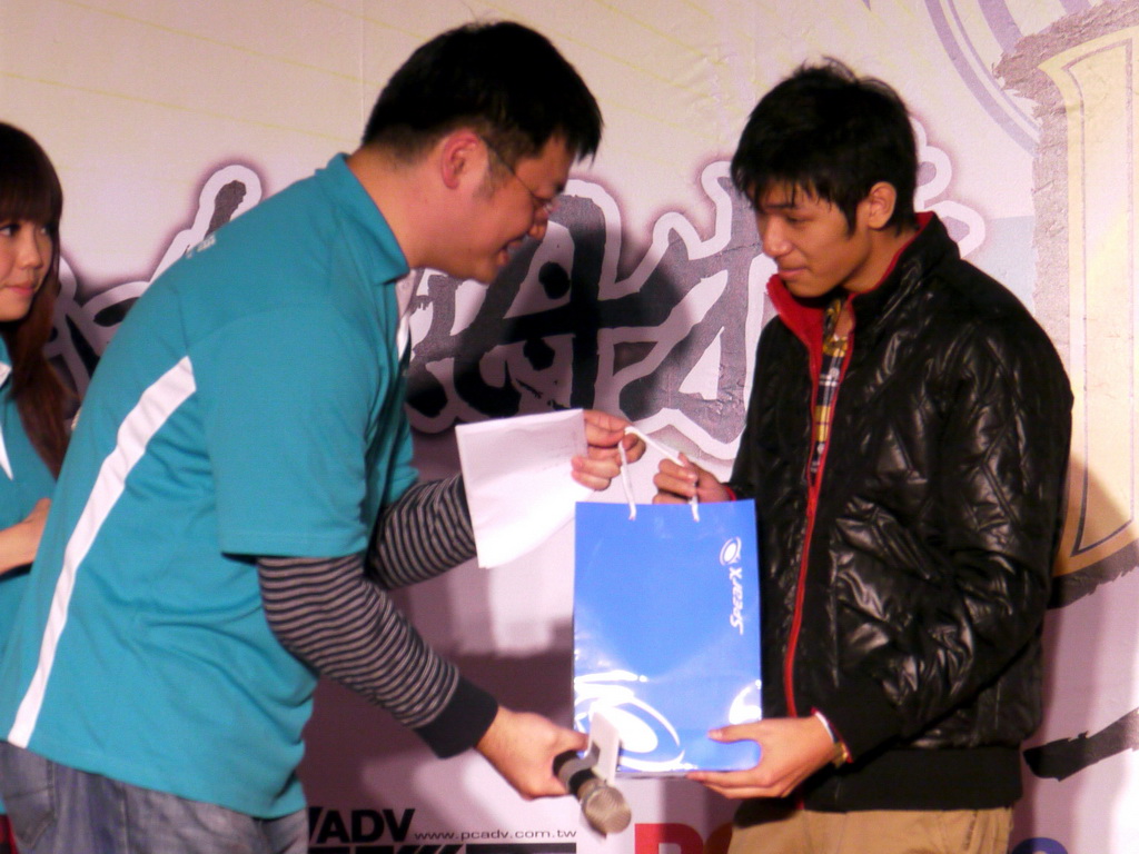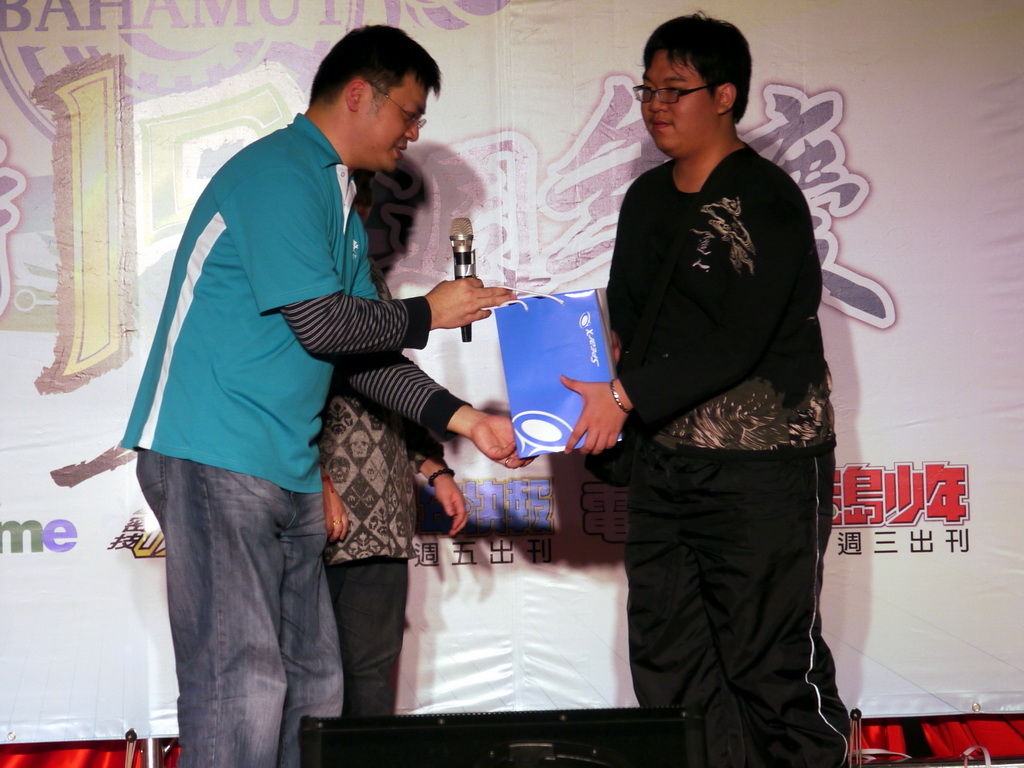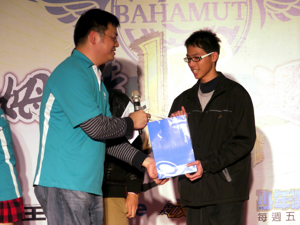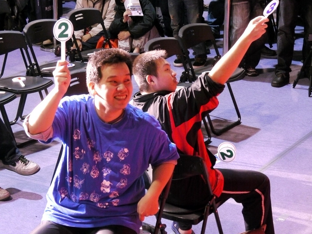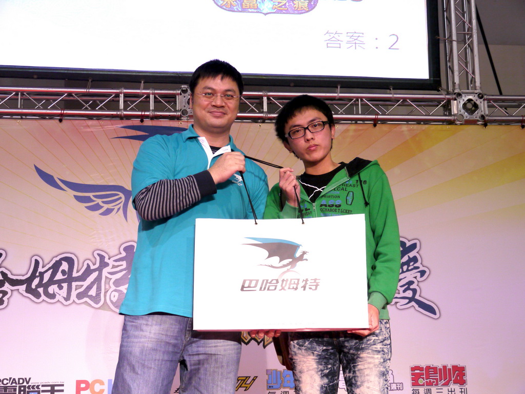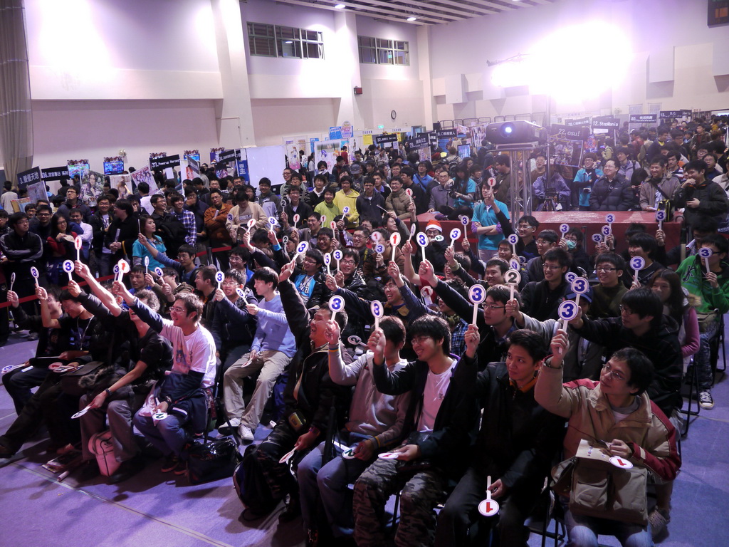 新世紀福音戰士》EVA 初號機的合理身高」、「2011 年新版《獵人》動畫飾演小傑的聲優」等問題,考倒不少參賽者,最後剩下三名挑戰者在「《旋風管家》台灣真人版偶像劇三千院凪由誰飾演」這題中分出勝負,由熱愛《天元突破》的林朕宏獲勝,他說自己是在朋友邀約下、首度來參加站聚,他很高興也很驚訝自己可以獲得冠軍。
