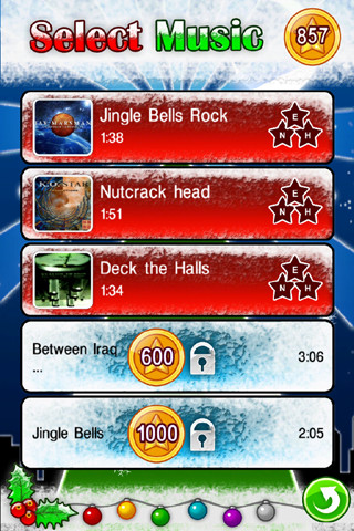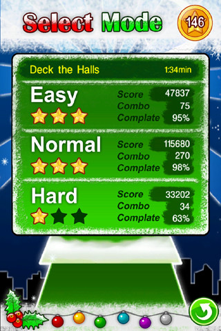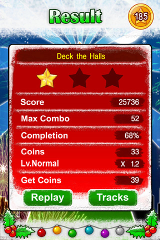 此外在遊戲進行中,隨著節奏度提高,聖誕裝飾禮物會定時出現在畫面裡,節奏度越高,畫面就會越繽紛華麗。