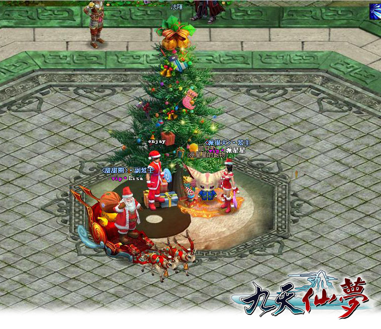 九天仙夢》為了營造出幸福氛圍,特地在「凌風城」設置了一顆華麗的聖誕樹,但 Boss 妖怪們卻因為沒收到城主邀請而生氣作亂奪走這些可愛的飾品。即日起到 28 日止,只要擊敗指定 Boss 並奪回聖誕裝飾,即有機會得到限量「聖誕裝」、可增加附加屬性的「聖誕雪橇」和外型可愛的「呆呆熊」等限定虛寶。