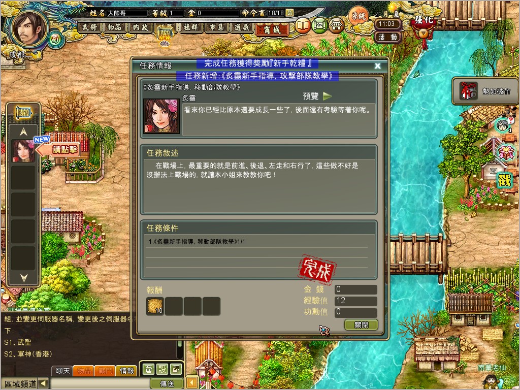創完角色,隨即進入各勢力的城池,玩家可以經由任務介面,了解如何進行遊戲最主要的關卡,《