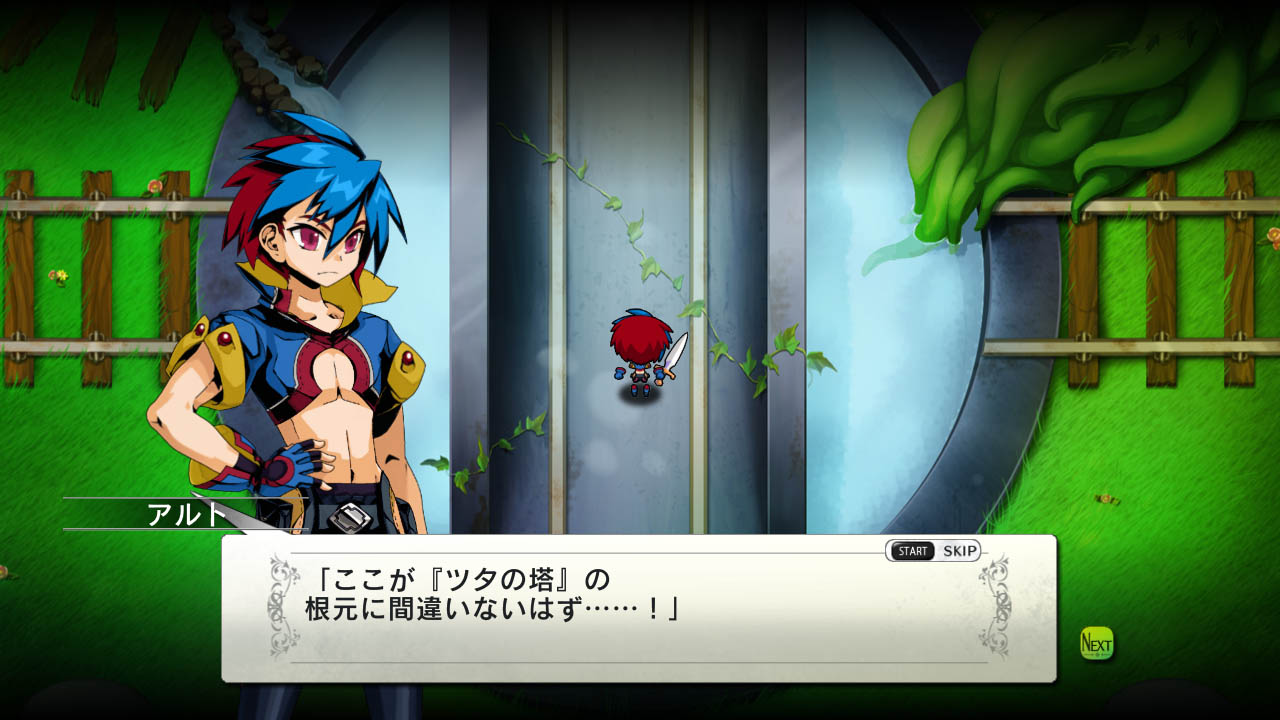 為了將因為「詛咒」而石化的妹妹回復原狀而展開旅程的 17 歲青年。循著隱藏力量的遺產藏於「藤蔓塔之塔(ツタの塔)」這條線索而向迷宮出發。