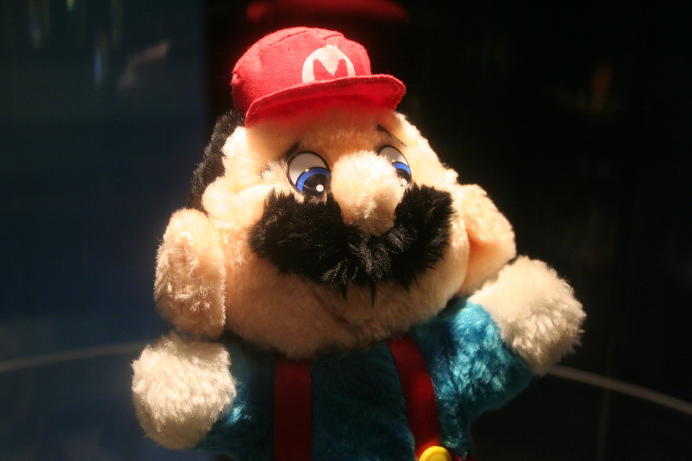 | 初代的瑪利歐絨毛玩偶。說真的要是我還是個小朋友收到這個禮物的話,我也許會嚇哭也說不定 |