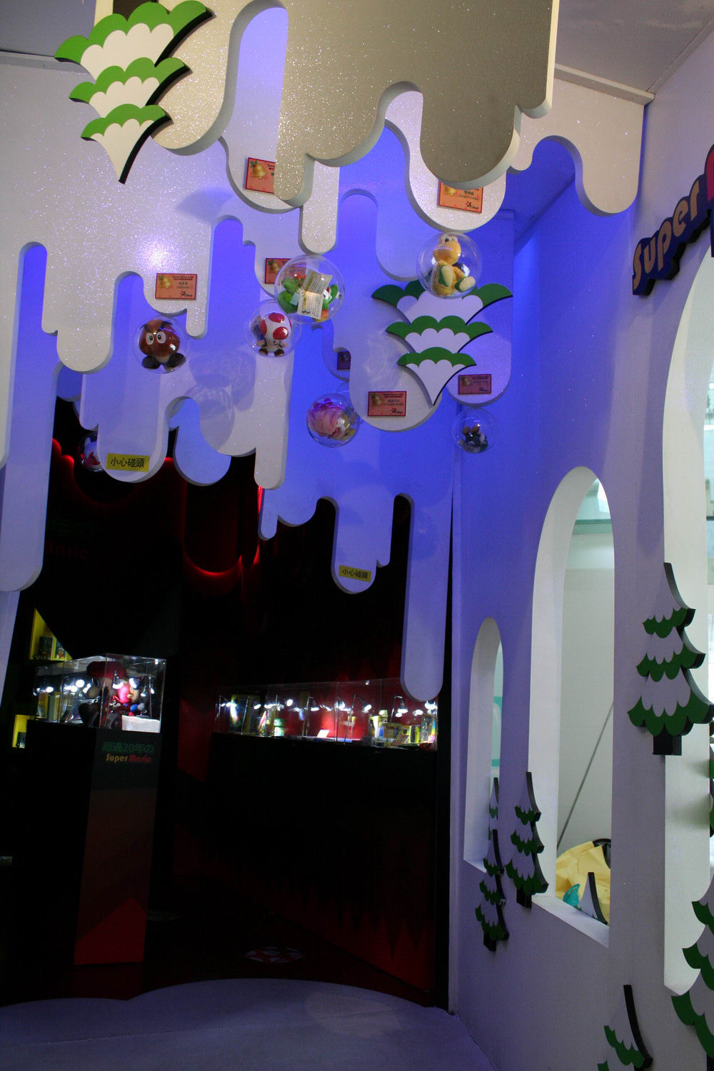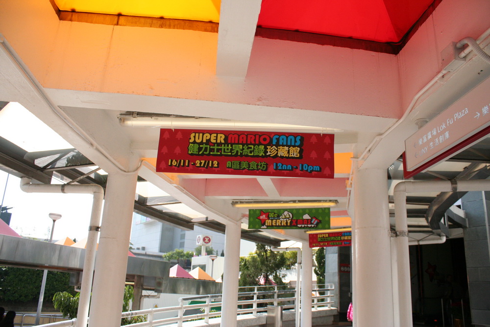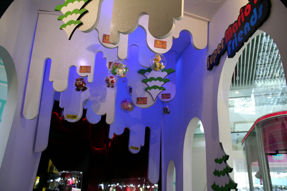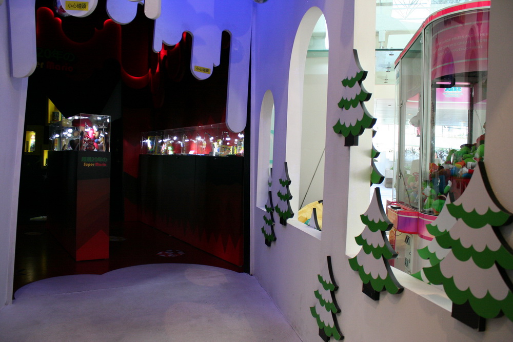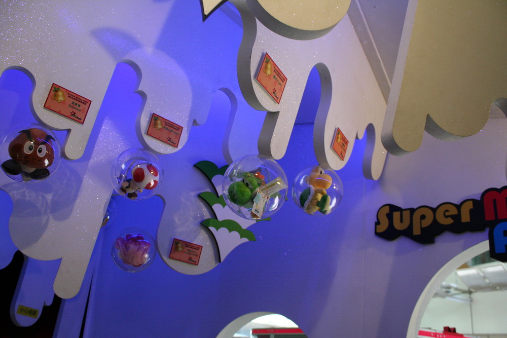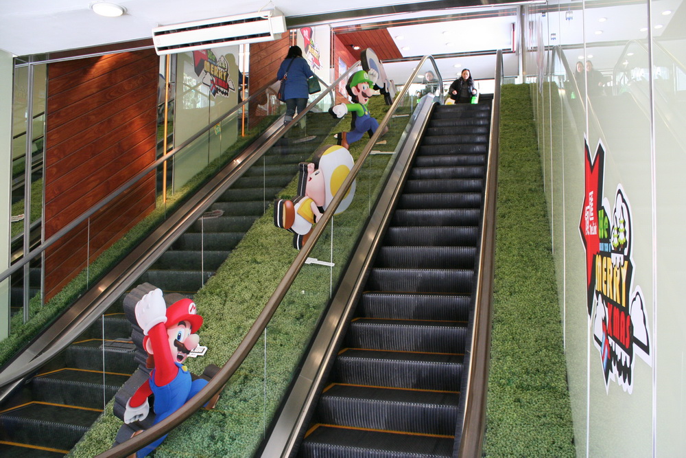 | 電扶梯上也作足了瑪利歐的主題裝飾 |