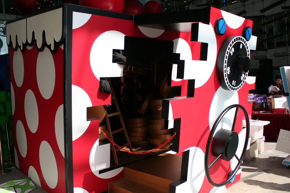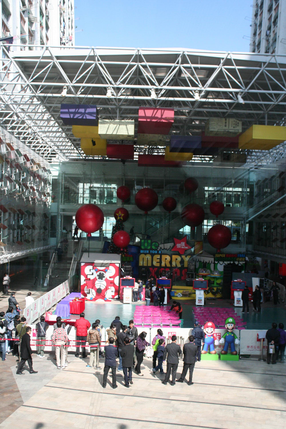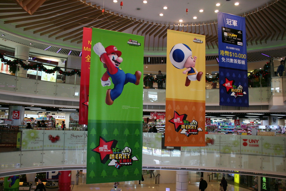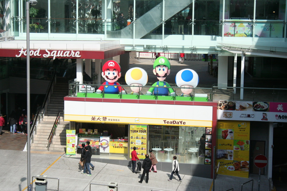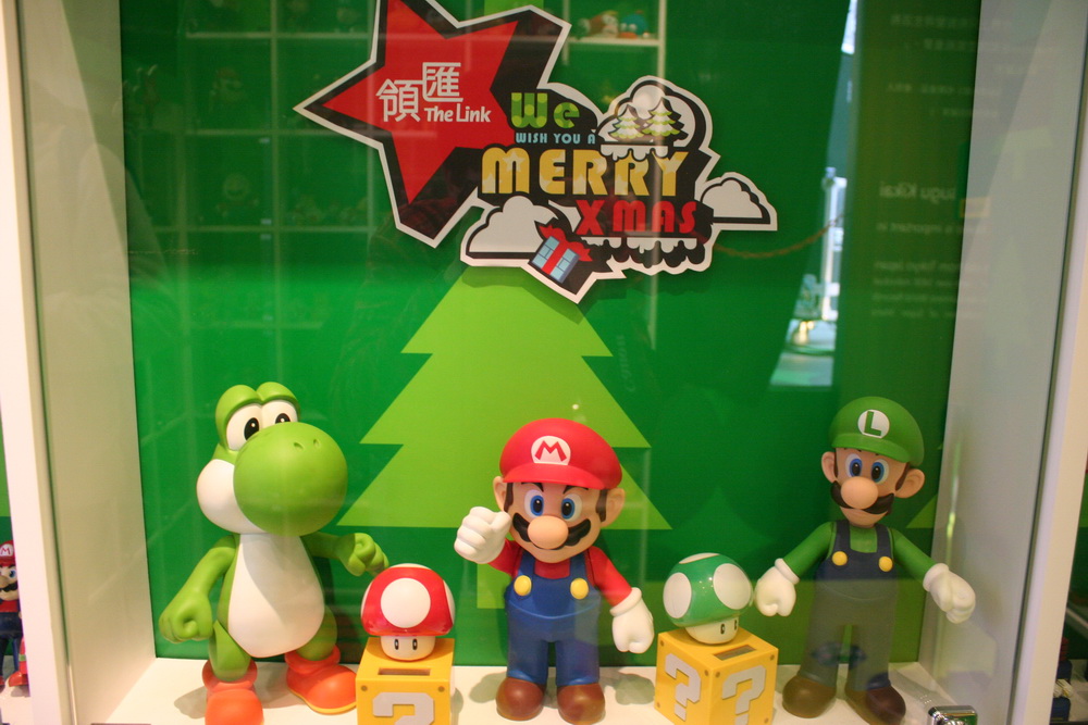| 電扶梯上也作足了瑪利歐的主題裝飾 |