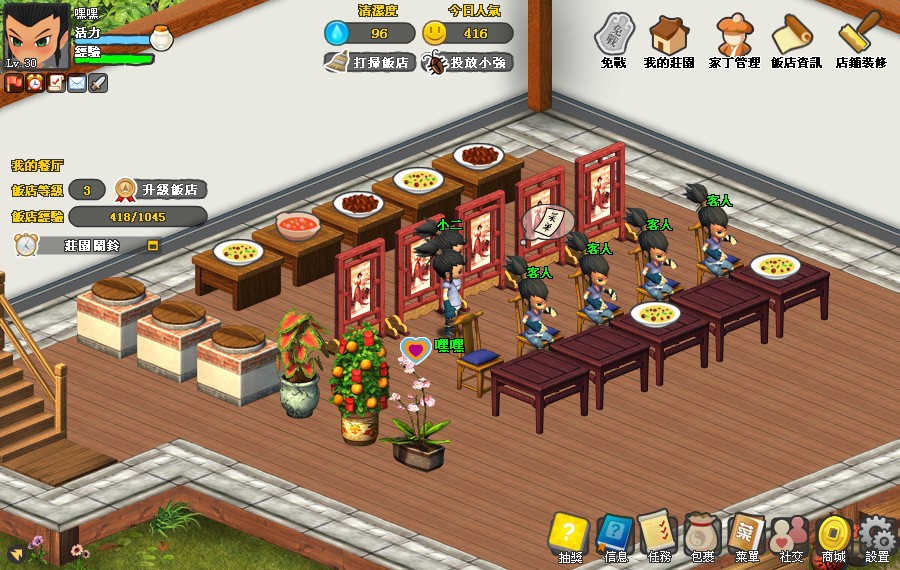 快炒人生》由“廚娘明日香”以百變的造型,傳達給玩家“炒菜不必放肉絲、炒飯一定要放感情”的遊戲精神;結合類似餐城與農場等的多變性玩法,還有完整的社交系統、商會系統、離線採集系統等設計,希望讓玩家享受無後顧之憂的遊戲體驗。遊戲內還可以與好朋友一起泡溫泉加活力、到農場採材料,去牧場餵小豬與小羊咩小動物外,還能自己開飯店當老闆,