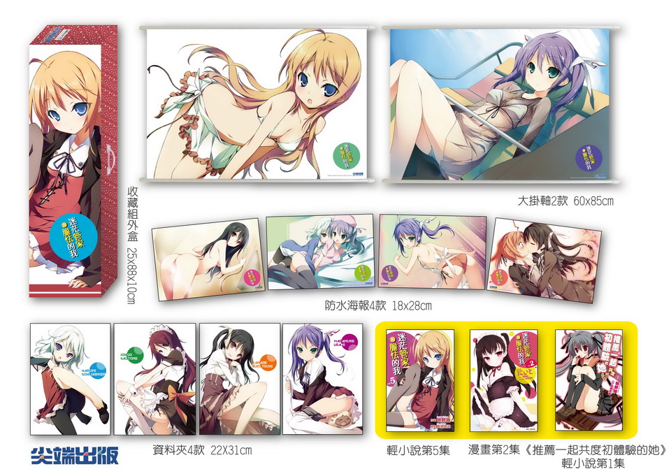 迷茫管家與膽怯的我》漫畫第2集、《推薦一起共度初體驗的她》小說第1集、大掛軸(2款)、資料夾(4款)、防水海報(4款),定價2,500元,限量200組。