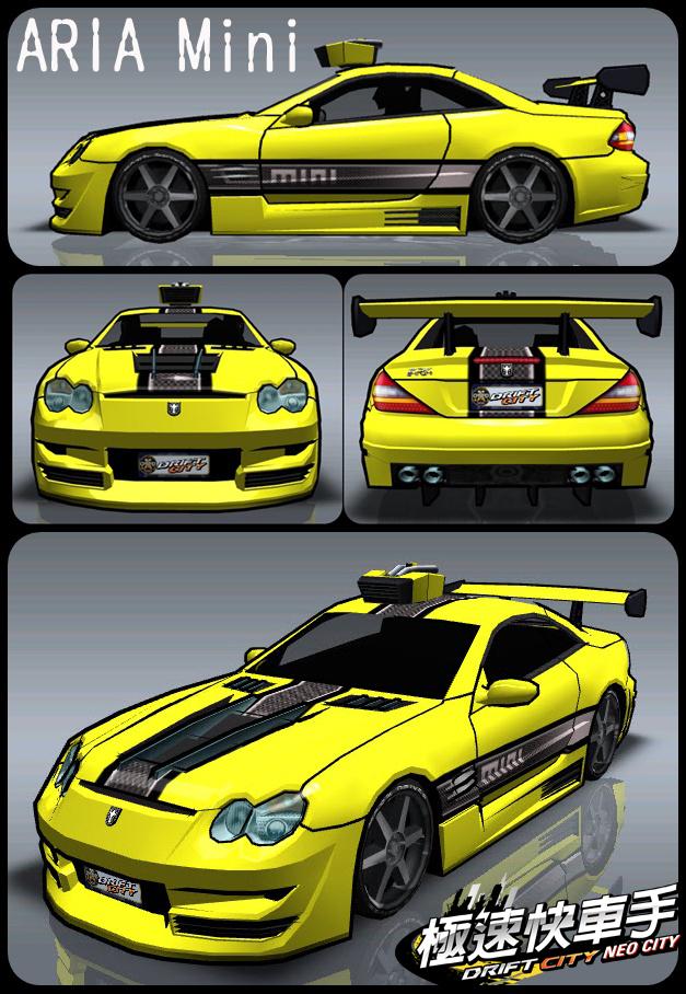 擁有霧燈和進氣口的完美結合,三孔橫柵式的水箱護罩,以及紅白相間棋條式尾燈,這樣渾然天成的風範非「Aria Mini」莫屬,在遊戲中更是藉著渦輪起跑和甩尾噴射展現了極佳性能和速度,如此珍稀的名門車種,玩家們快來搶先收藏。