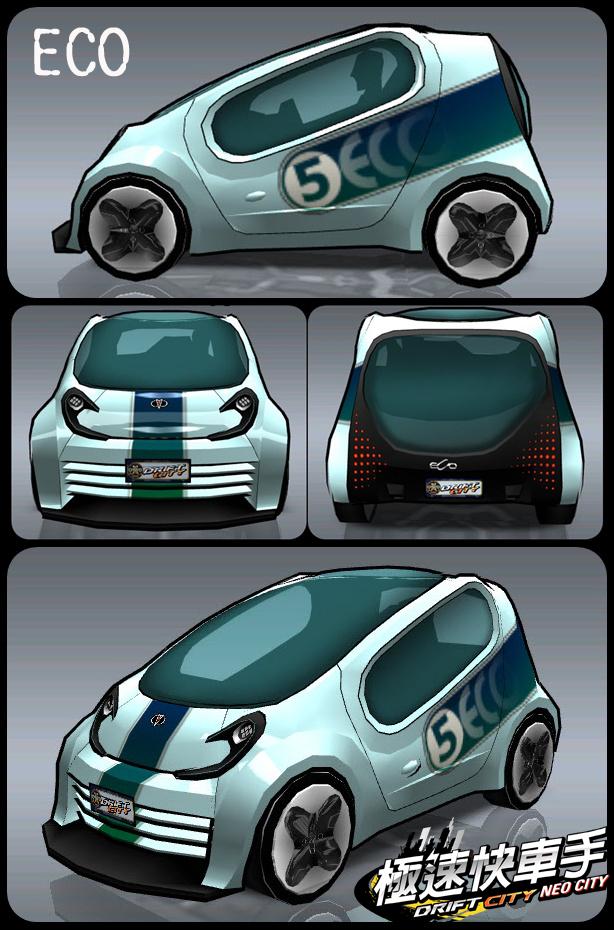 以都會型用車為設計概念的「ECO」,是清秀嬌小的新代表,其時髦前衛的卻兼具個性十足的精神輕易擄獲不少男女的心,V9 最高速度達 275 的超高速,輕巧而有力的加速 235,而其碰撞後降低速度下降量 10% 的特殊性能更是適合喜歡靈活輕巧車種的玩家。