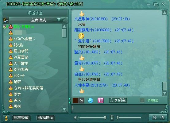 當玩家一進入遊戲中就可以開啟內建的「嘟嘟語音系統」,玩家不僅可以自己開創聊天室與志同道合的夥伴聊天同歡樂外,官方還請來美女 DJ 擔綱嘟嘟語音電台主播,玩家只要在主播排班時刻上線就可以跟主播互動,不管是聊天、K 歌樣樣都行。另外玩家自己開創頻道後可以設置各種模式比如:卡拉 OK 模式、麥序模式、主席模式等;玩家在頻道裡面發送的字數、表情、文字的顏色都可以自由設置,另外頻道的開創者還可以發送頻道公告讓在該頻道的所有人都能看到。