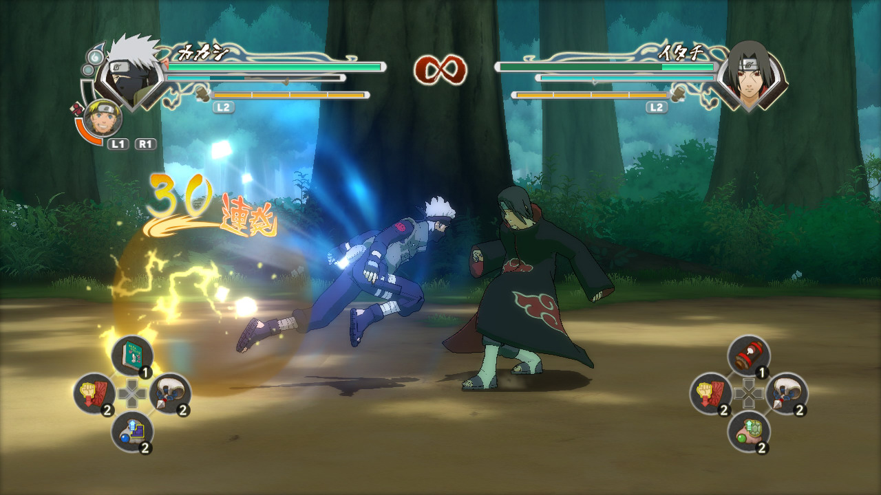 本作新加入了可以取消所有動作的新系統「查克拉取消衝刺」。原來已經打完要陷入硬直的連段攻擊,可以使用查克拉取消衝刺將硬直取消,再度發動新的連段攻擊。如果靈活運用查克拉取消衝刺,將可以不間斷的給予對手不容反擊的傷害。