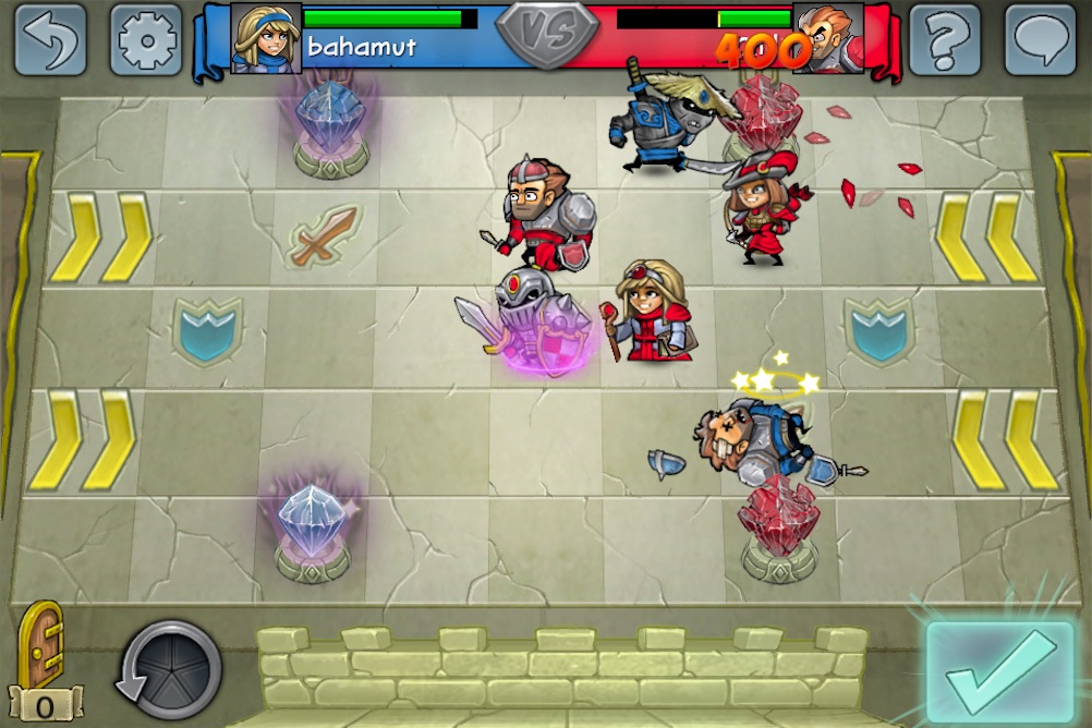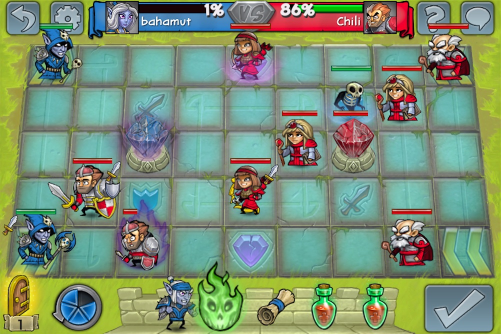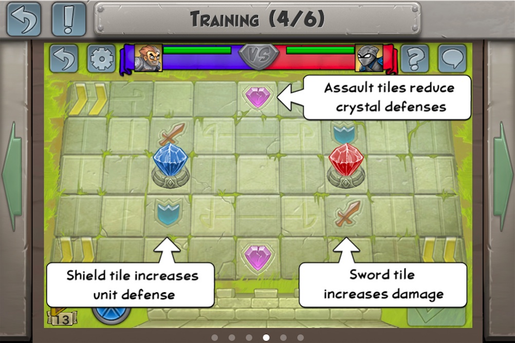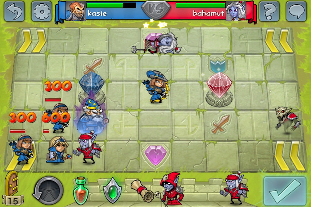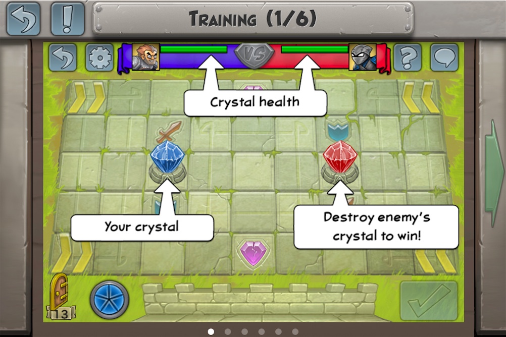 至於遊戲的玩法也非常簡單,雙方同意對戰後將進入 9 乘 5 的棋盤中,每位玩家每回合可執行五次動作(Actions Per Turn)來移動、攻擊、放置英雄或使用道具等等,當五次機會用完後再按下送出鍵(Submit Turn),就換成對方的回合來進行下去,期間還要好好保護己方的水晶塔,同時也要攻擊對方的,當成功摧毀對方的水晶塔或殲滅所有英雄,就算該場勝利了。