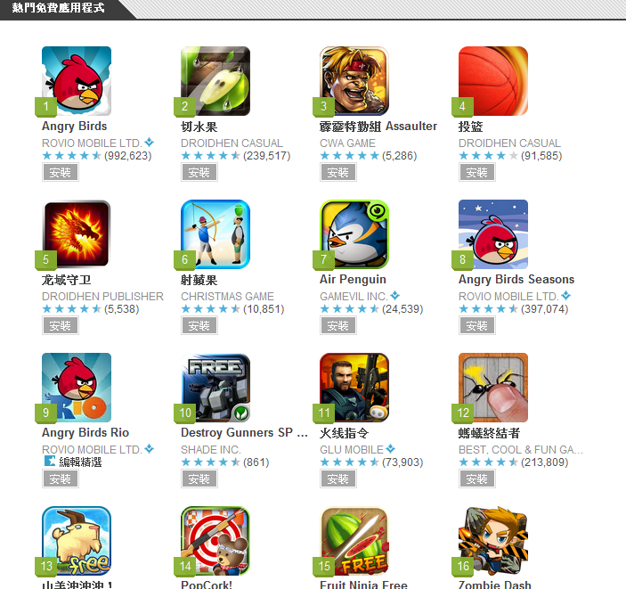 Android Market 動作類遊戲排行榜上擠進前三名,超越兩款不同版本的《