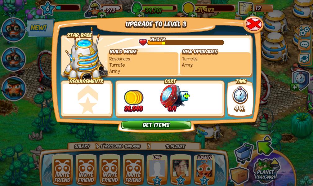 在玩家的城市中,最重要的建築非「星際總部(Star Base)」莫屬。雖然總部除了增加資源除藏量之外沒有明顯的功能,不過許多的建築物與兵種都需要總部達到一定等級才能夠進行升級,因此若是能夠升級總部,就請盡快進行吧。