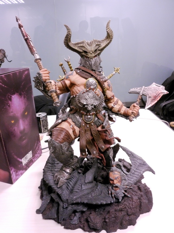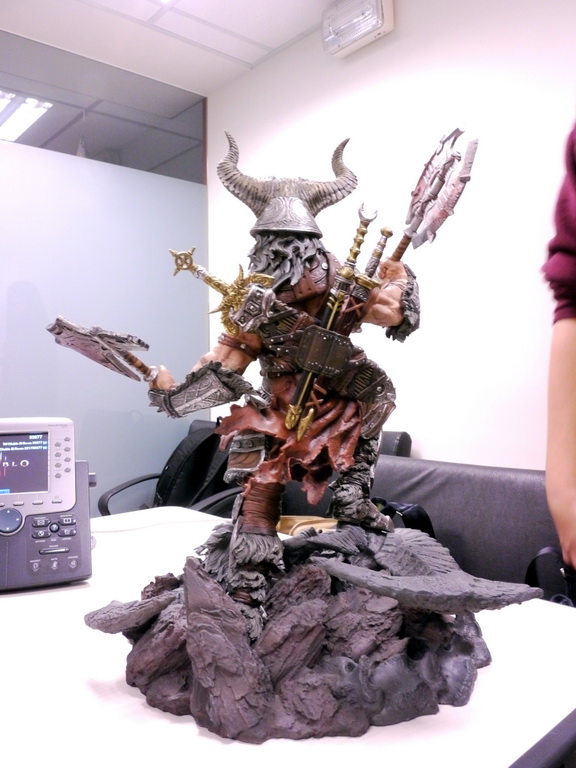 Blizzard 員工才有的野蠻人模型,注意到他的頭部造型跟市面上一般版本是不同的嗎?(仔細看腳下還有一般版的頭可以更換)