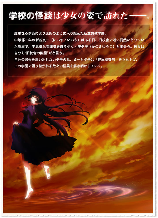 在廣大的古老校園裡,流傳著許多不可思議的傳說。有一天,「新谷貞一」在舊校舍內遇到傳聞中的幽靈夕子,由於不忍心讓她繼續在學校裡徘徊,因此決定替失去記憶的「夕子」追查校內怪談的真相並找出有關她的線索。