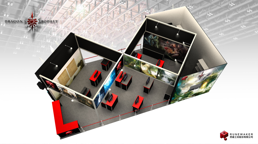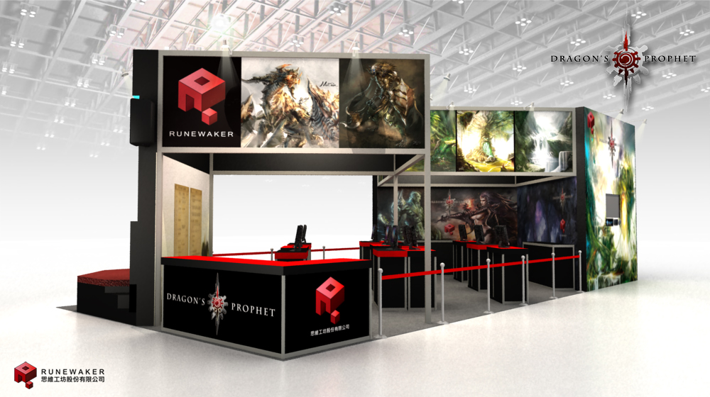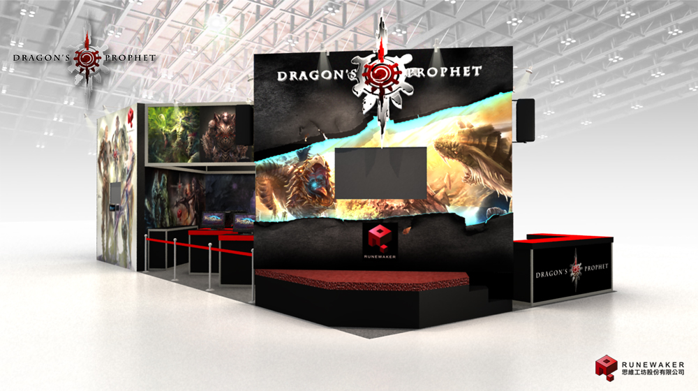 龍戰爭的磅礡氣勢,每日舞台在 10:30、14:00、16:30 將會由主持人王盈潔及迷狐女郎蕭邦進行問答贈獎的活動;試玩區則結合了遊戲內的角色與場景設定圖,讓玩家能在體驗遊戲的同時,也能有身處在奇幻冒險世界的感受,而現場還有遊戲企劃人員可與玩家近距離互動及解說產品特色。