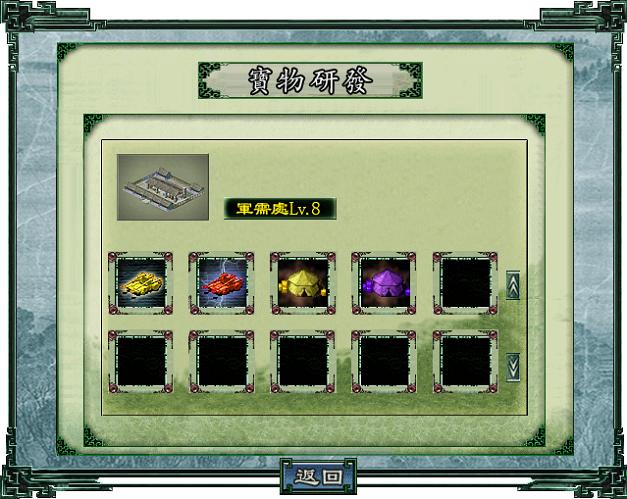 隨著軍需處達到 6,各式強力的法寶也將陸續出籠,像是攻城利器「投石車」也將供玩家研發。投石車會根據等級的提升增加攻擊力、移動力、防禦力和血量,讓使用者有機會演出以寡擊眾的奇蹟。