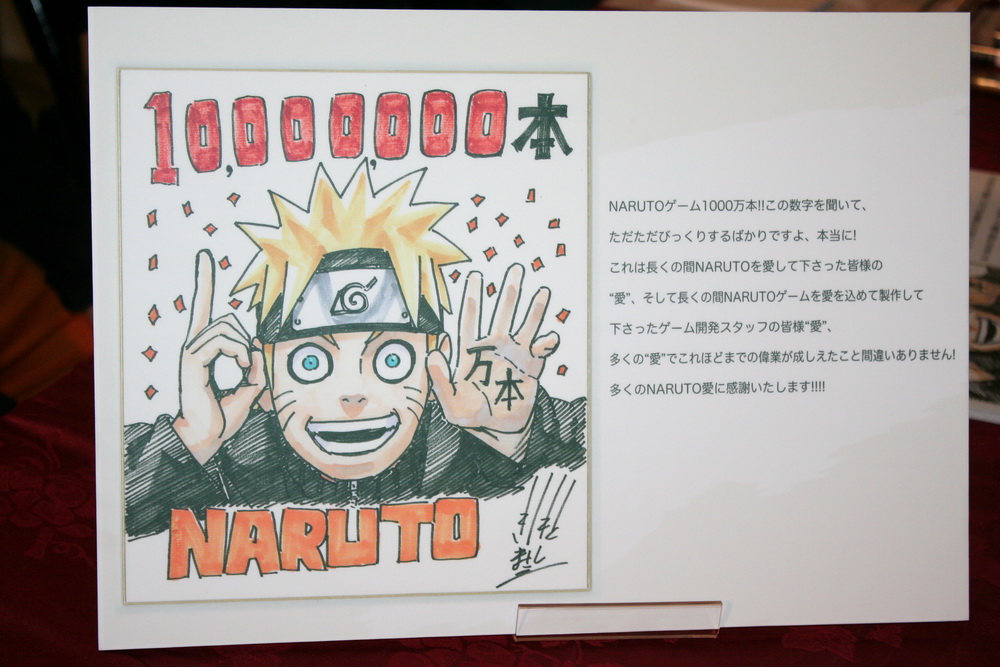 火影忍者》遊戲系列銷售突破 1000 萬套所畫之祝賀畫以及賀詞,並傳達了岸本齊史老師向玩家們以及遊戲系列的「愛」之感謝之情。