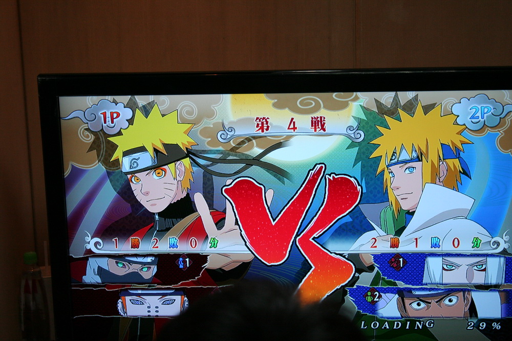 火影忍者 疾風傳:終極風暴世代》的初賽。在兩方捉對廝殺中,可以觀察到許多玩家都使用好上手性能高的主角漩渦鳴人,也有不少玩家選擇了鳴人之父「湊」、「佐助」以及「鼬」等等人氣角色。