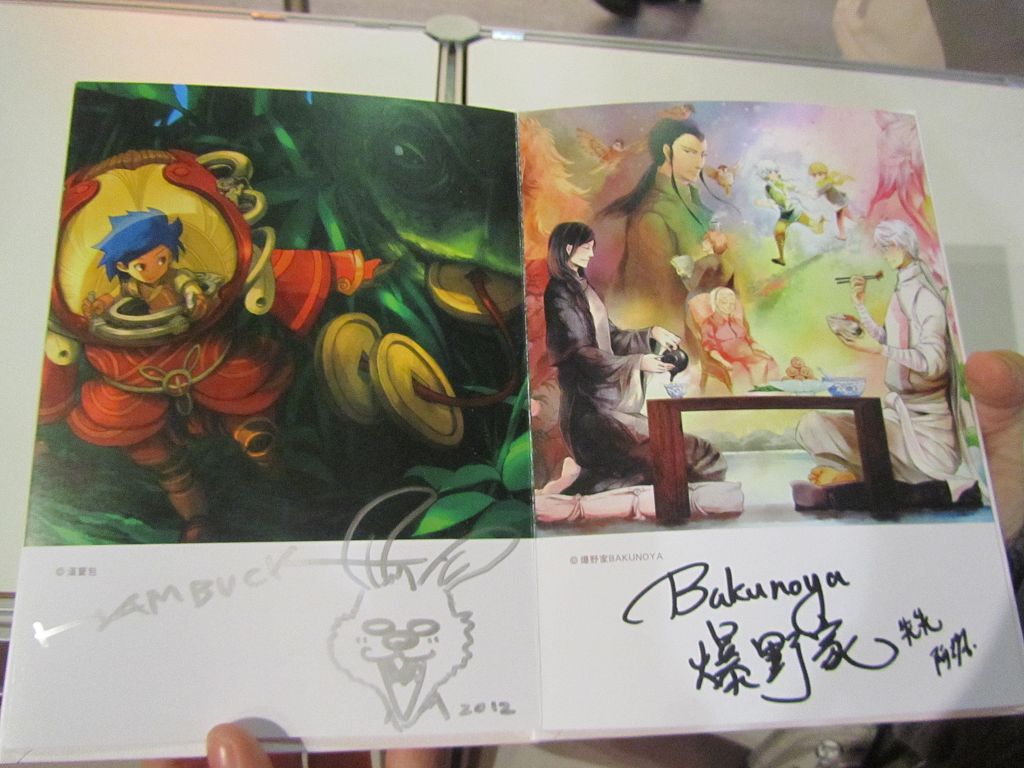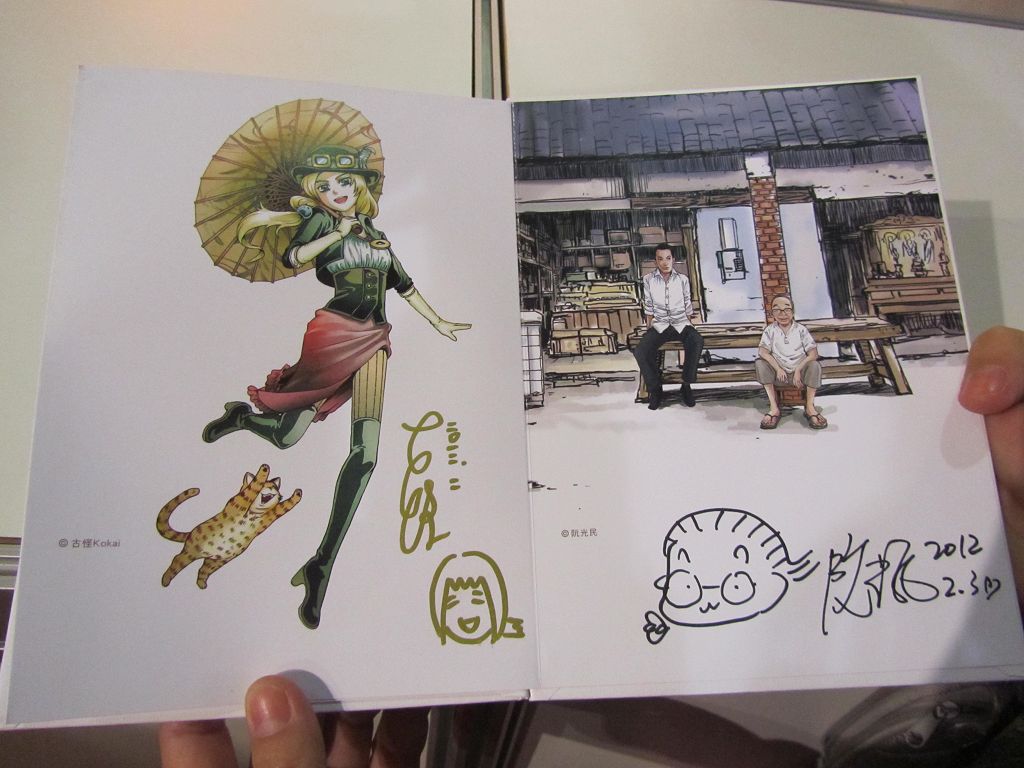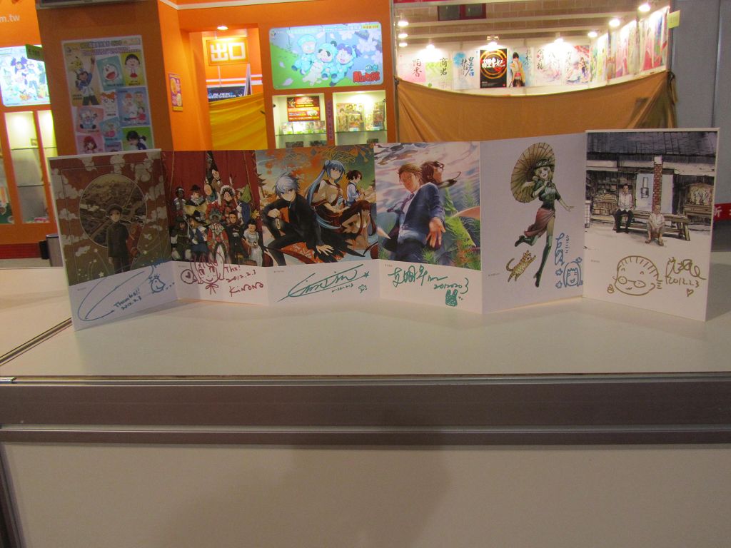 而為了本次的簽名繪活動,蓋亞文化也特別製作了一款極具紀念價值的精美十合一限量簽名本,使用拉頁的方式呈現這幾位漫畫家的作品與簽名。並在現場以圓弧形的桌位,現場與其說是簽名會,更有濃厚的交流、同樂會之感。