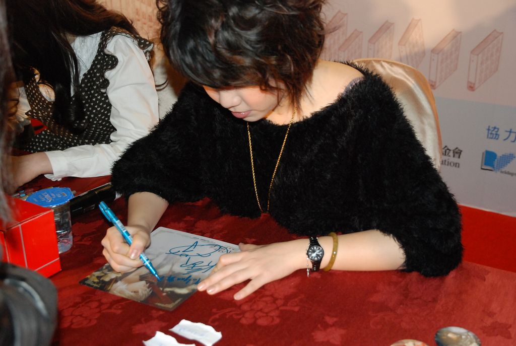| 有行動不便的讀者遠道而來,因此兩人也特別下台為她簽名 | 與讀者合影 |