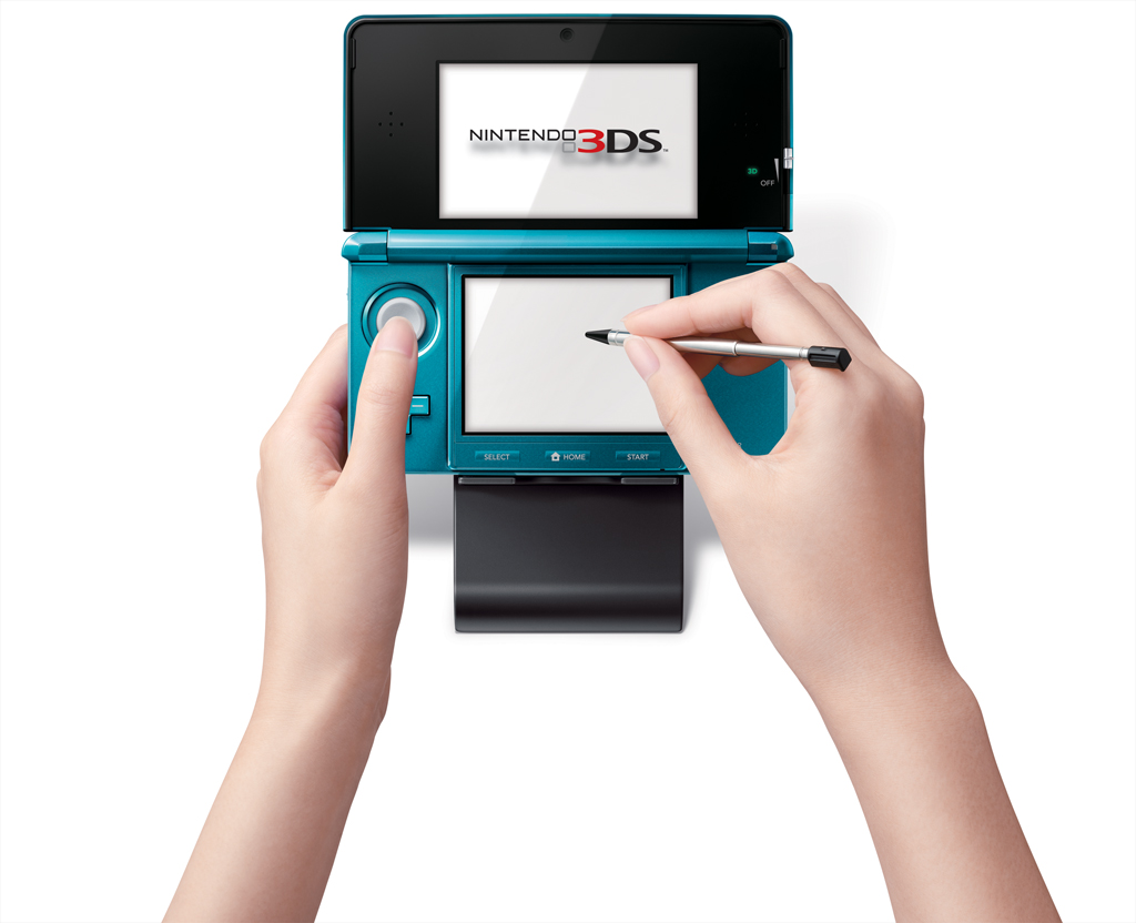 | 可折疊的 N3DS 立架 | 架在立架上遊玩 |