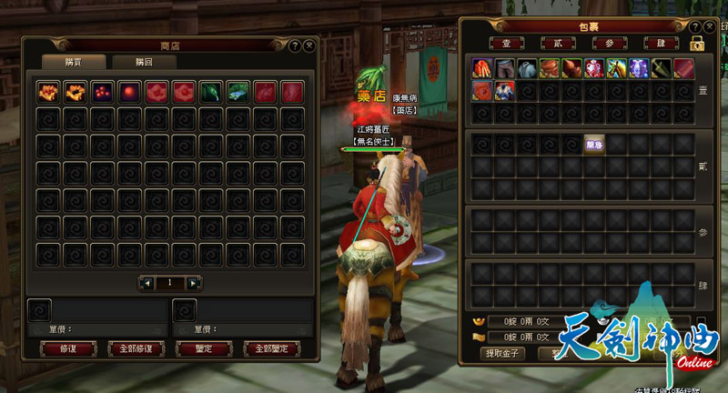 當累積太多用不上或者淘汰的寶物時,和商人 NPC 對話並打開商店,在自己包裹中想要出售的東西上點擊滑鼠右鍵即可進行變賣。當然玩家們也可以用打怪或是經過買賣後賺來的銀子,來購買自己需要的武器裝備。