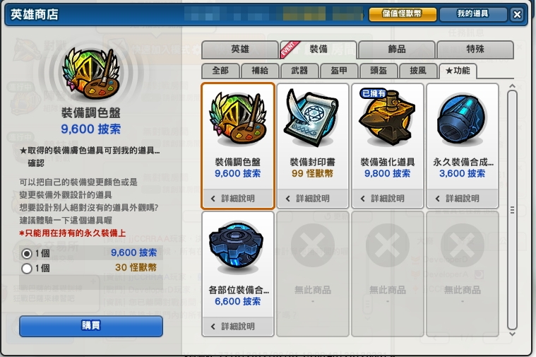 步驟 1:先從商城購買一個「裝備