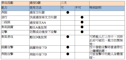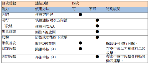 ● 奔跑中可進行四段攻擊