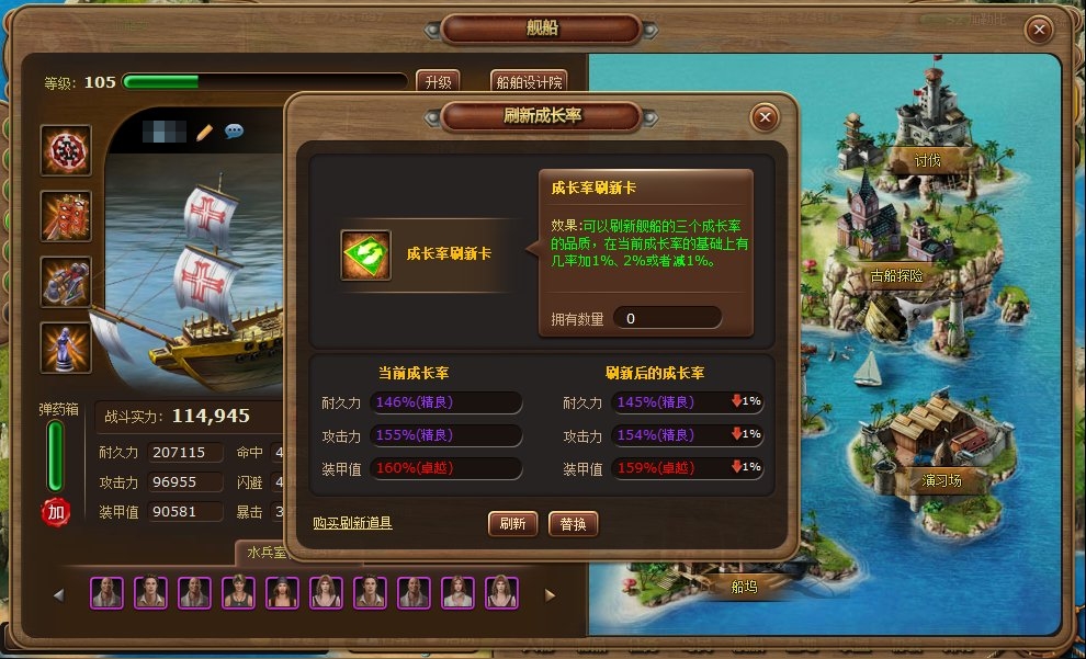 | 船艦的成長率,從初期鍛鍊,帶來未來船艦能力的強大變化 |