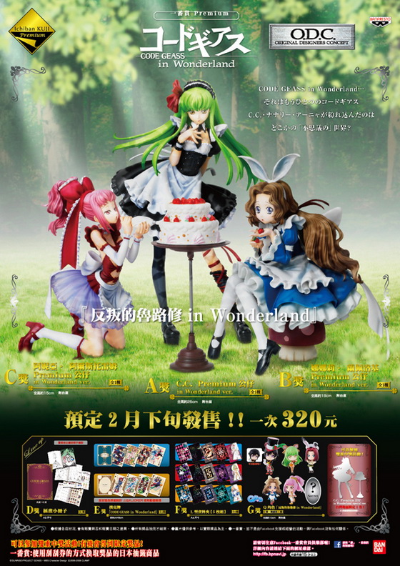 一番賞(一番くじ)是 BANPRESTO 所推出,以「通通有獎!!」為賣點,可以抽到豐富動漫周邊的商品系列。一番賞 「一番賞 Premium 反叛的魯路修 in Wonderland」2 月下旬發售。即將在"鼎美玩具、Toy Land、Toy World "門市發售!