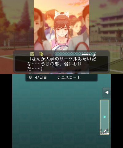 說到《NEW LOVE PLUS》最亮眼的改變,果然還是在遊戲畫面上的進步吧。雖然筆者以前認為以《LOVE PLUS》系列來說,畫面表現並不算是什麼了不起的重點。不過在看到了 N3DS 上畫面煥然一新的老婆,還是不禁感到一陣感動!對於 3D 模組全部翻新的女主角,就好像雖然近視了十幾年從沒有感到困擾過,不過有一天被強迫戴上了眼鏡,愕然發現「阿~我從來沒發現,原來自己的老婆真是正的不得了!」...的感覺。