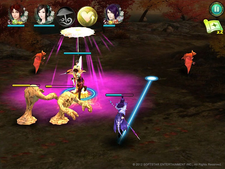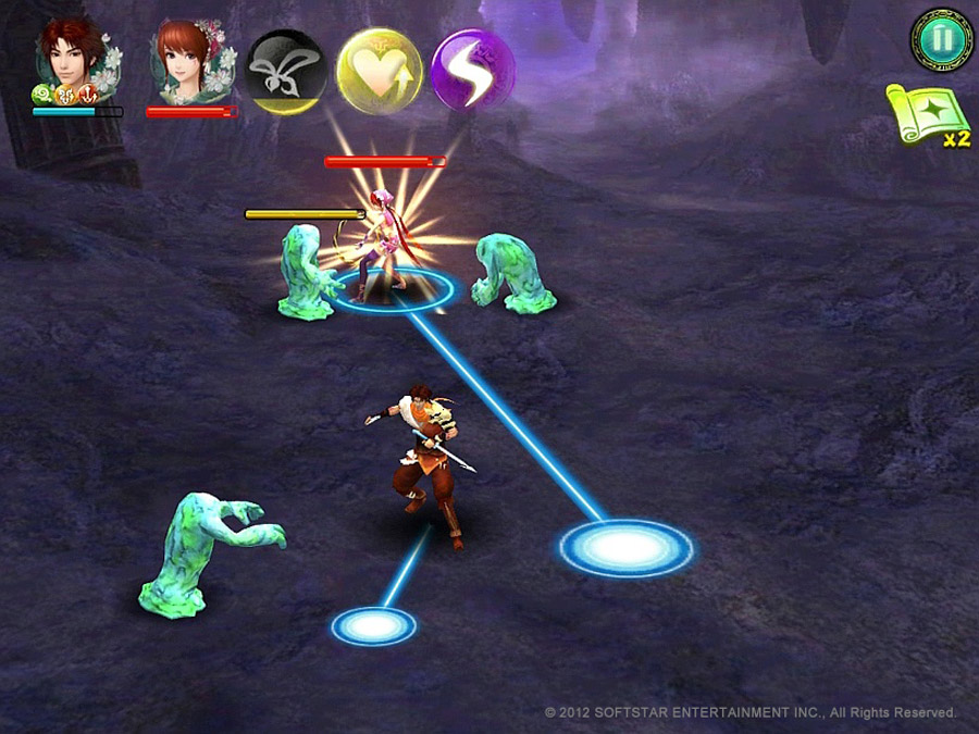 仙劍奇俠傳五–劍傲丹楓》汲取一般行動平台遊戲的優點,在操作方式上強調直覺,即使是遊戲初學者也容易上手,玩家只要用手指簡單操作點擊、滑動等動作,就可以輕鬆控制角色的移動、攻擊及使用技能等行為;遊戲支援 iOS 多點觸控功能,讓玩家循序漸進學習強化,最多可同時操作 4 個角色進行戰鬥,使用各種搭配組合迎戰各種敵人。