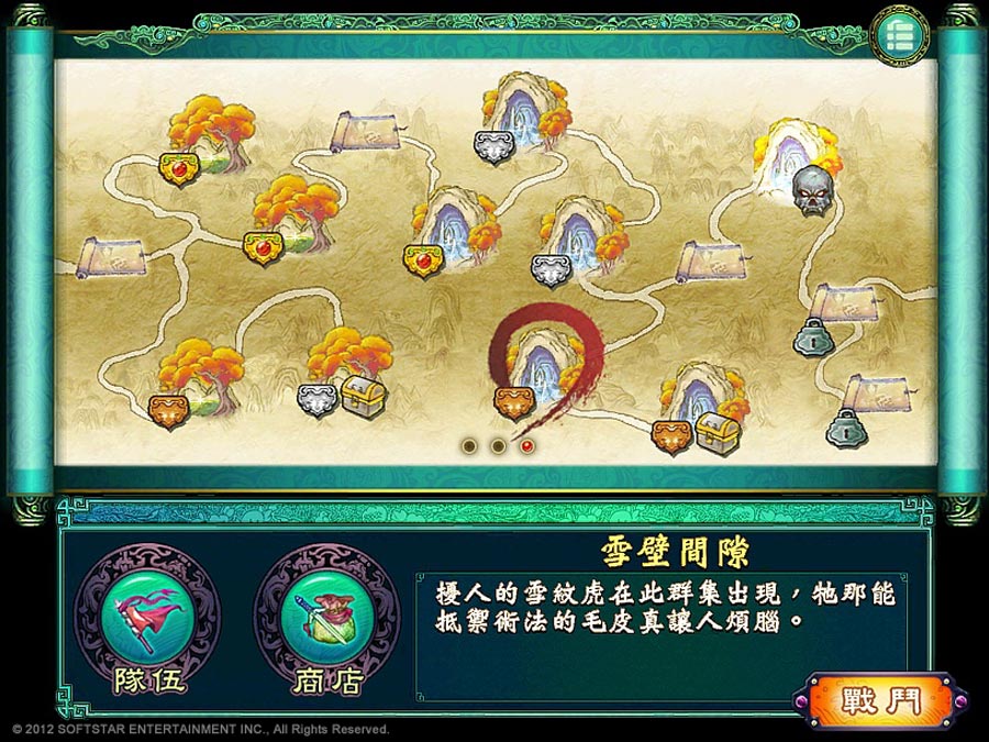 | 《仙劍奇俠傳五 – 劍傲丹楓》關卡選擇畫面 |
